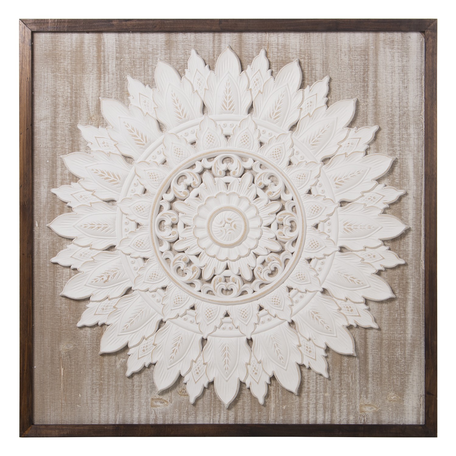 » Decorazioni Da Parete In Legno Traforato Con Specchio Su Un Quadro - Bianco Decapato 80x80