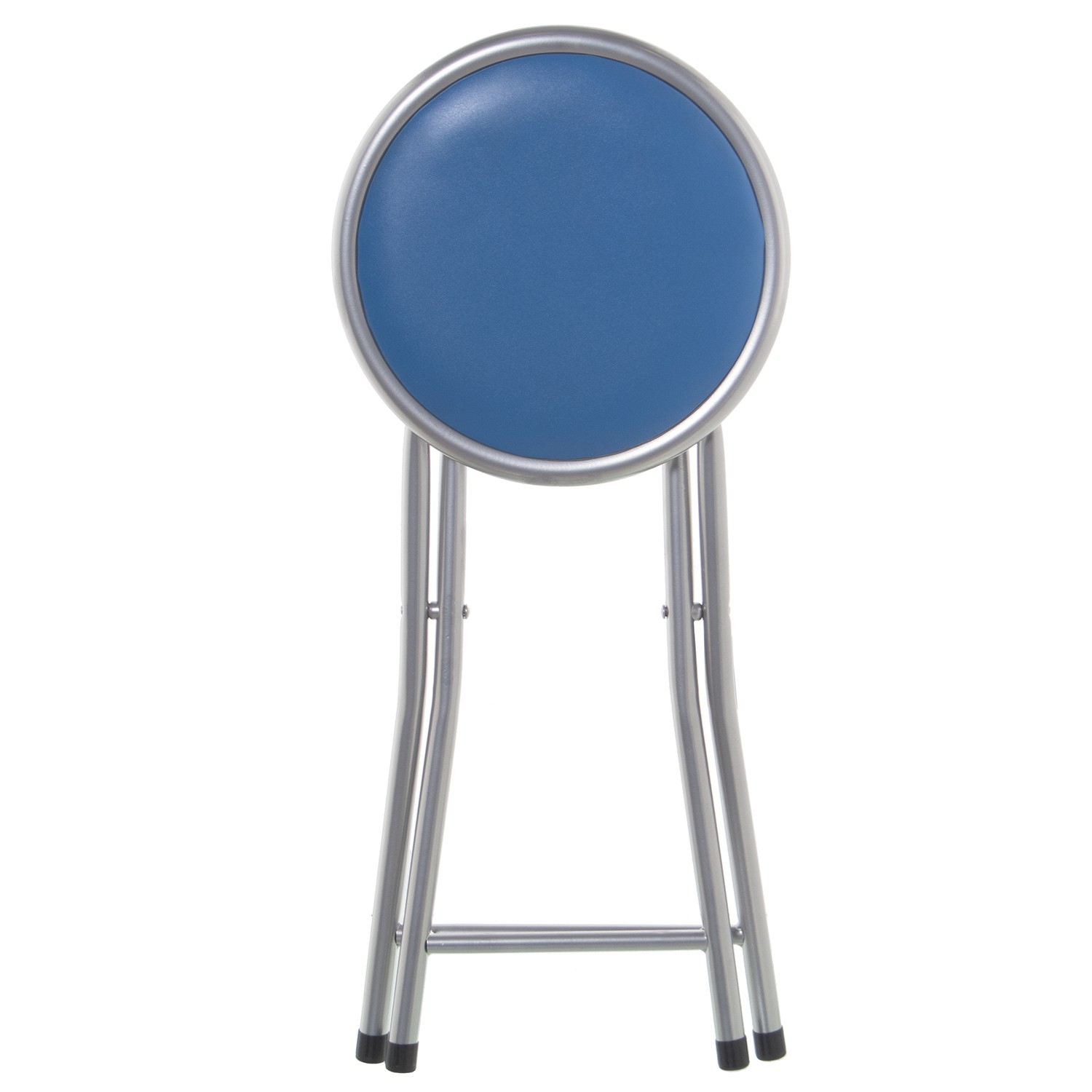 » Sgabello Pieghevole In Metallo, Sedile Blu Ø30x45cm Com Bloco Di Sicureza, Sedile Imbottito In Pvc
