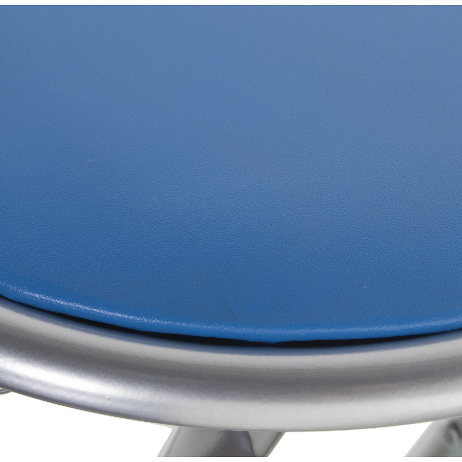 Sgabello Pieghevole In Metallo, Sedile Blu Ø30x45cm Com Bloco Di Sicureza, Sedile Imbottito In Pvc