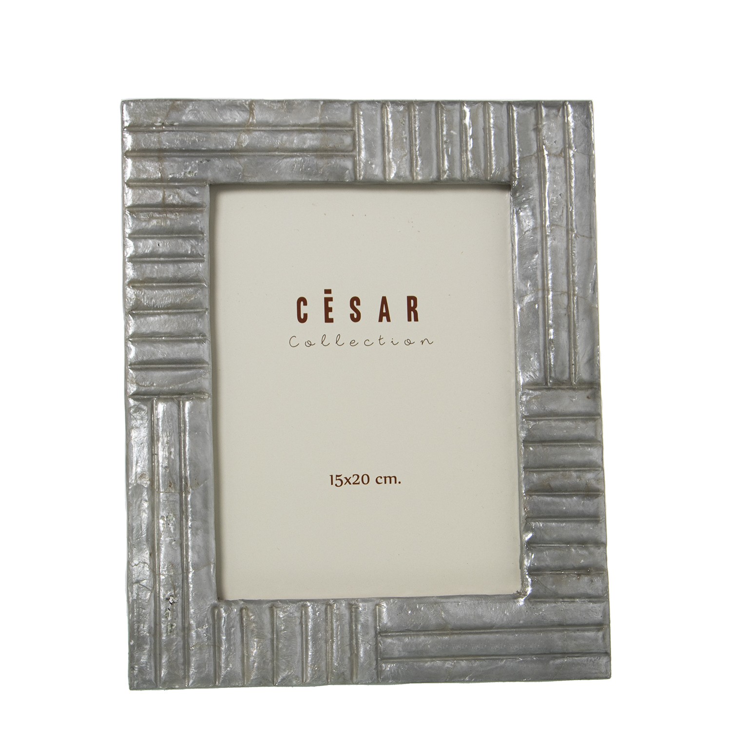 » Portafotos Nácar 15x20cm Líneas Gris Ext:22x27,5x1cm