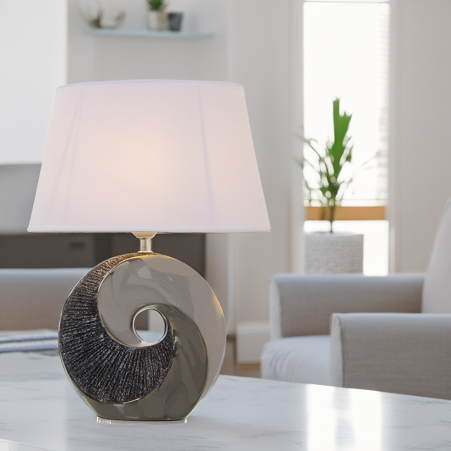 Lámpara Sobremesa Cerámica Gris/plata+92231,1xe27,max.40w N 32x20x44cm,base:22x9,5x27cm