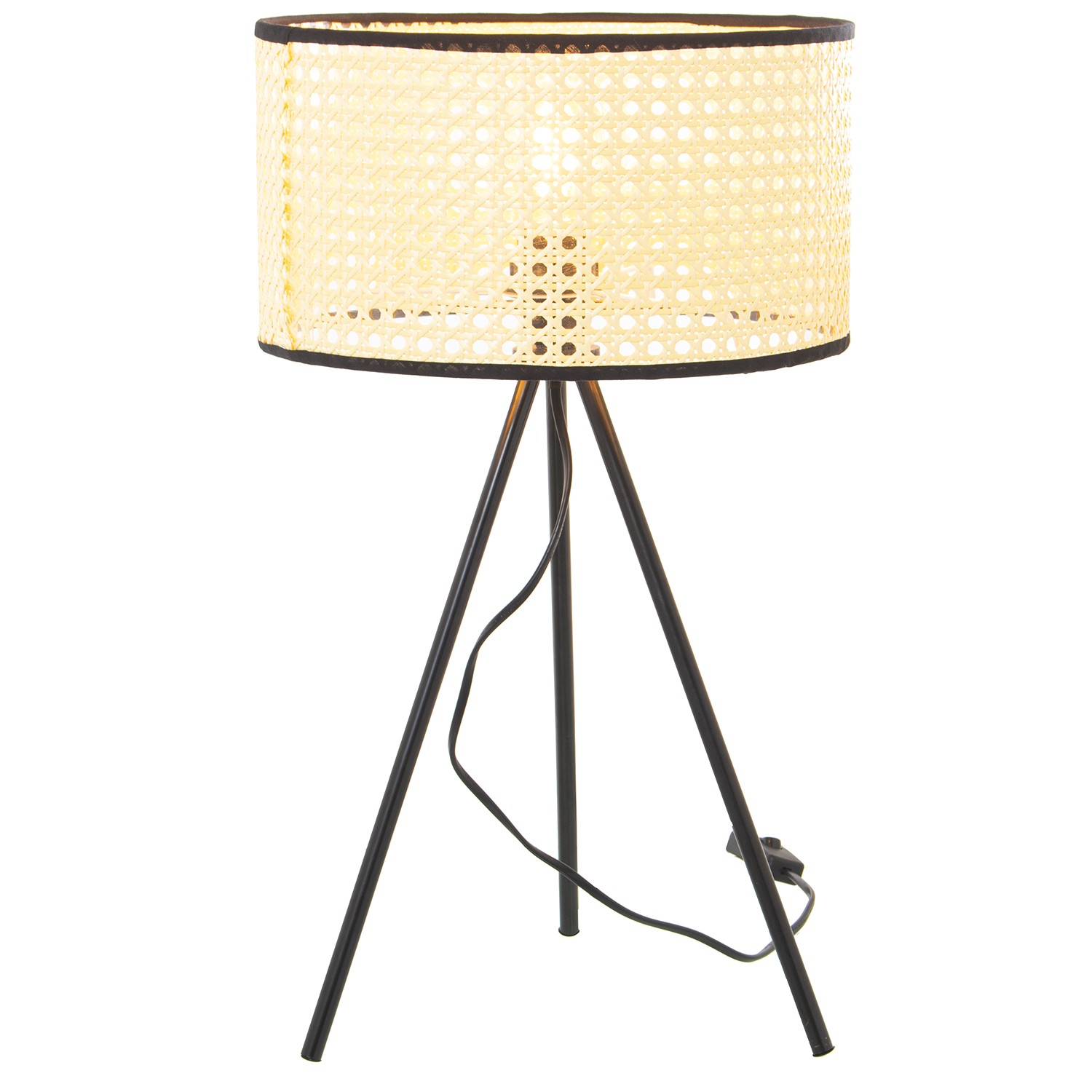 Lámpara Sobremesa Metal Pantalla Mimbre, 1xe27,max.40w Ø30x51cm, Base:19x19x37cm