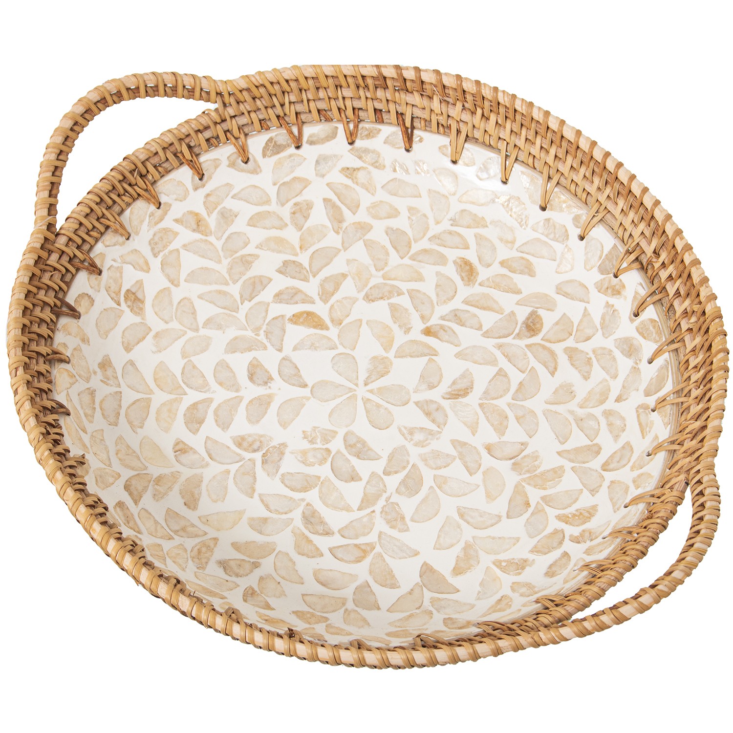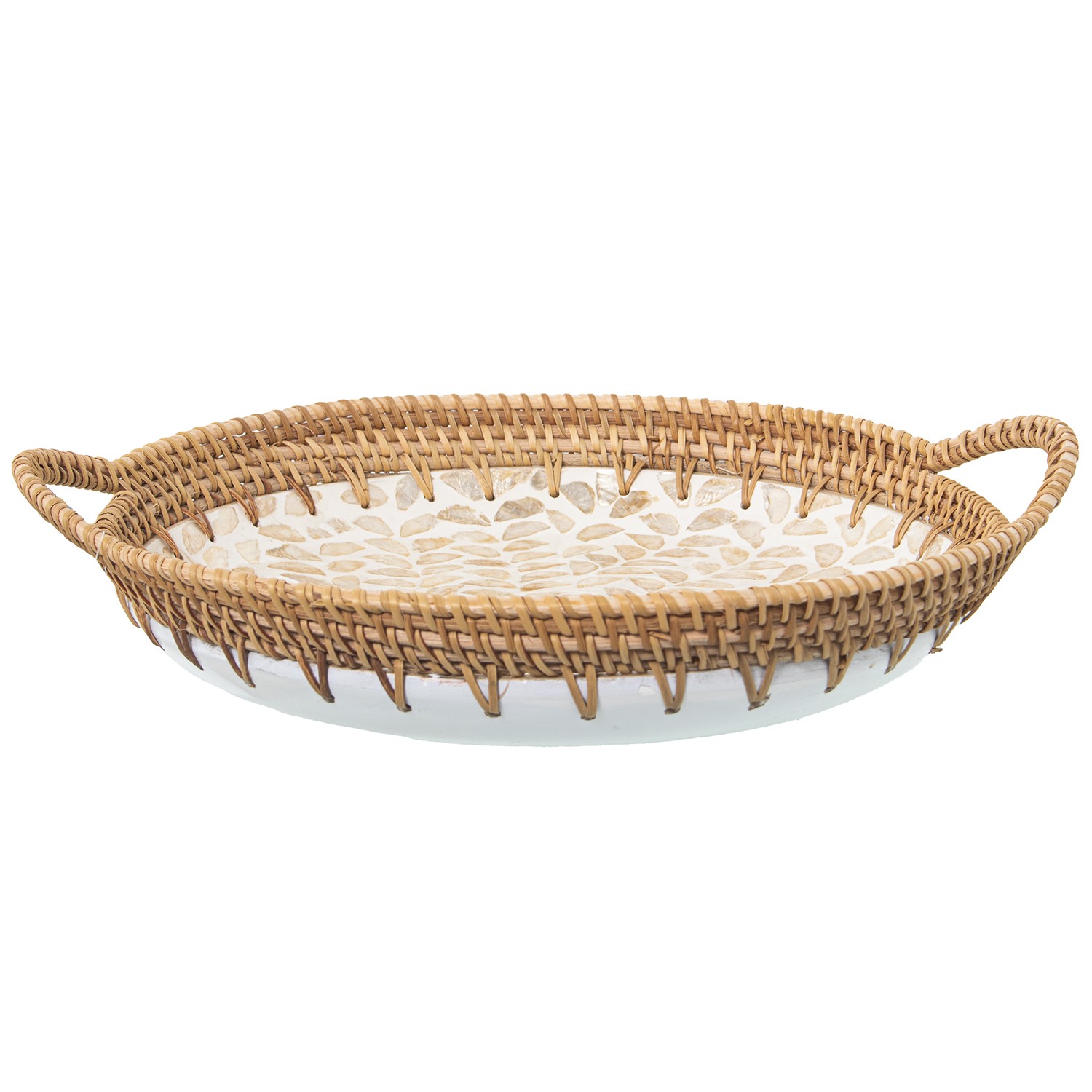 Bandeja C/asas Nácar/ratán 40x33x5/7cm