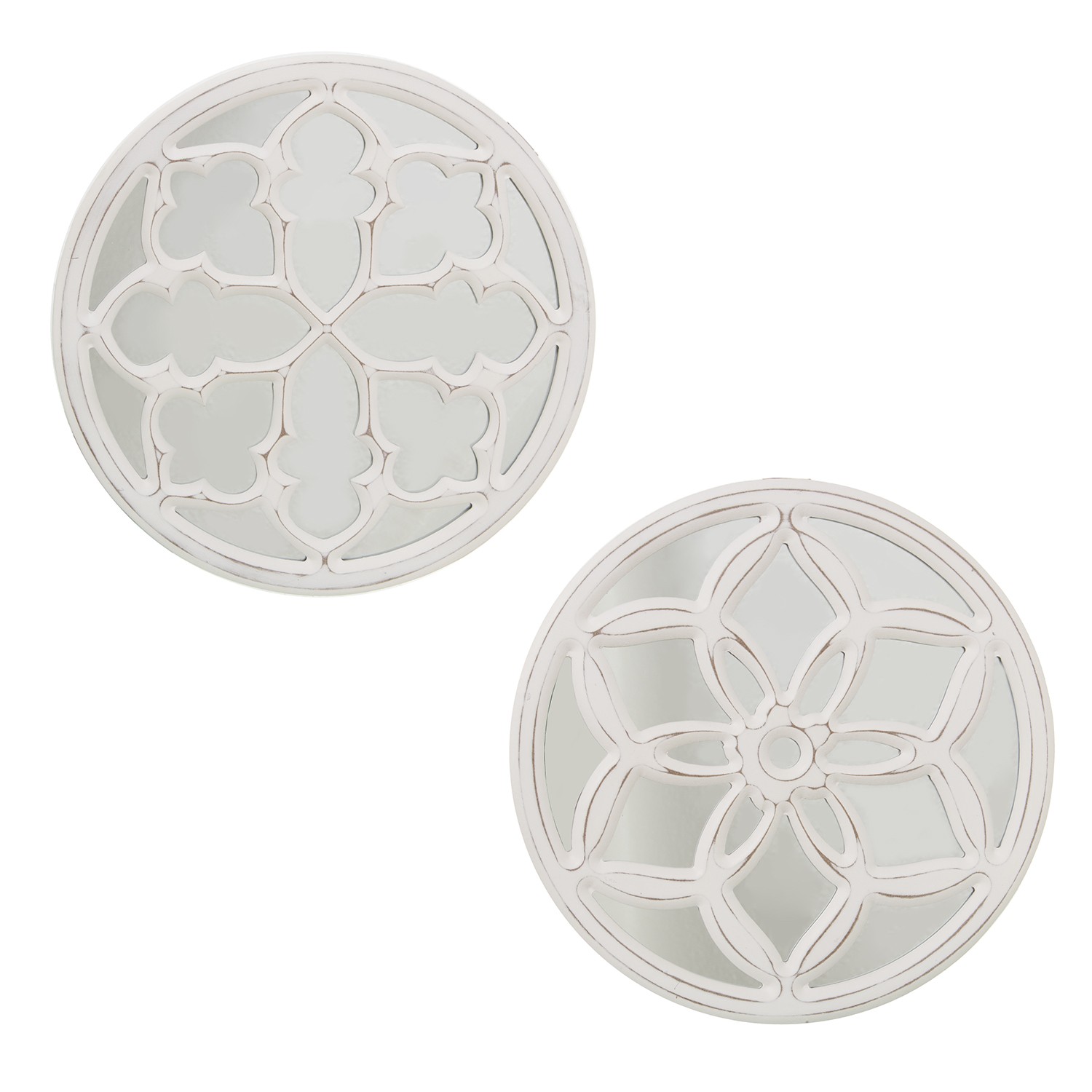 » Retablo Madera Calado C/espejo Blanco Decapé Surtido Ø30x1,4cm