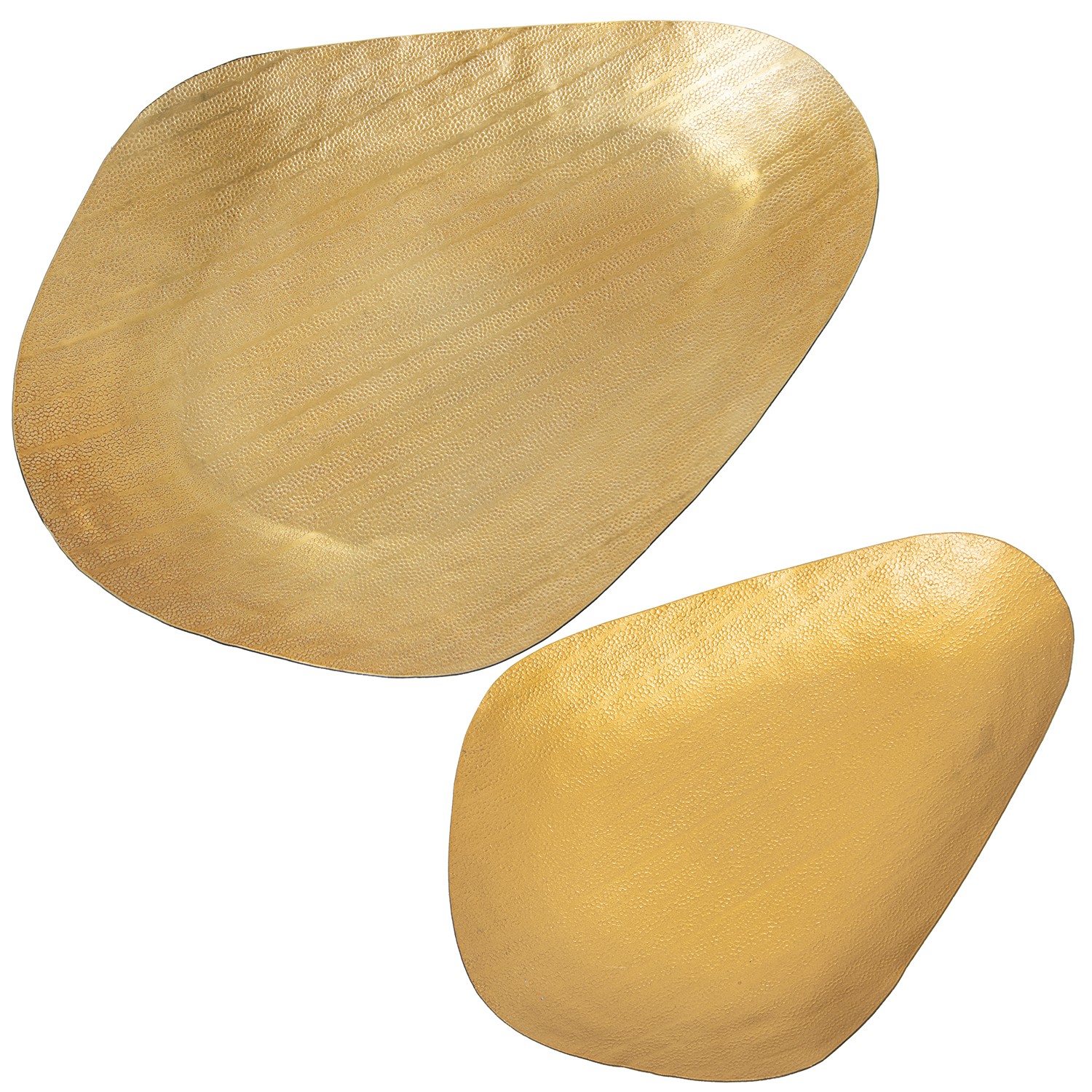Set 2 Bandejas Aluminio Tallado Dorado 31x23x2,5+42,5x32x4cm