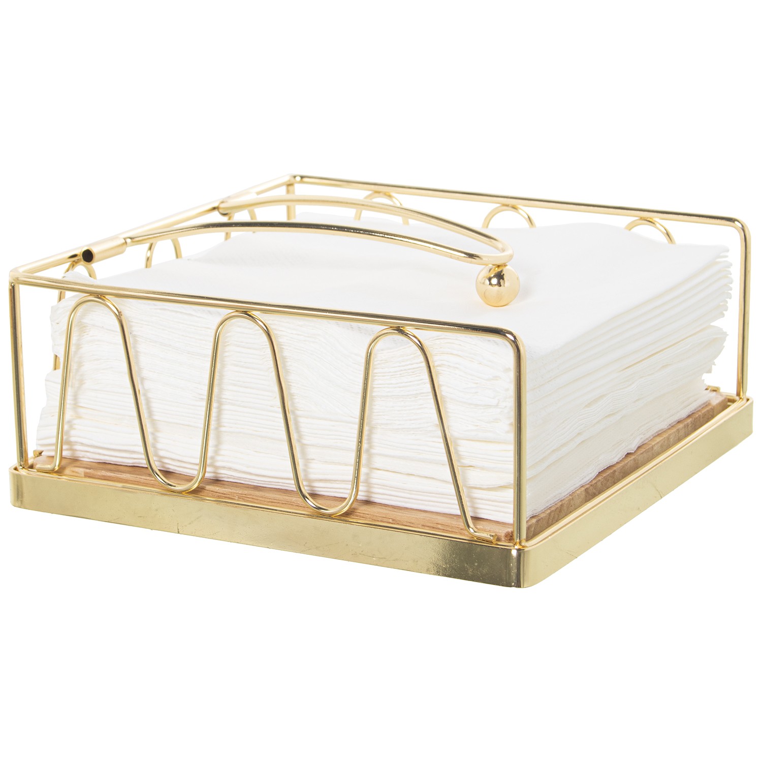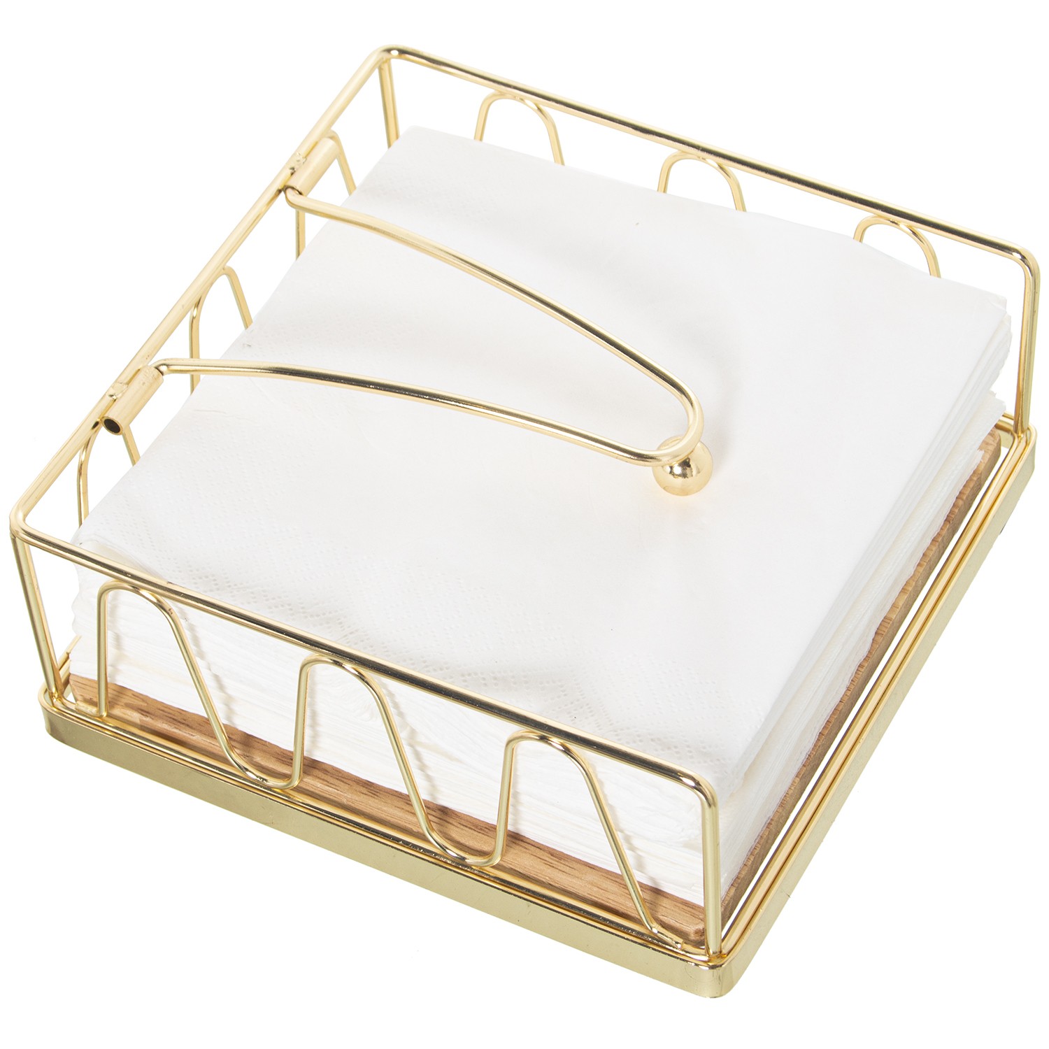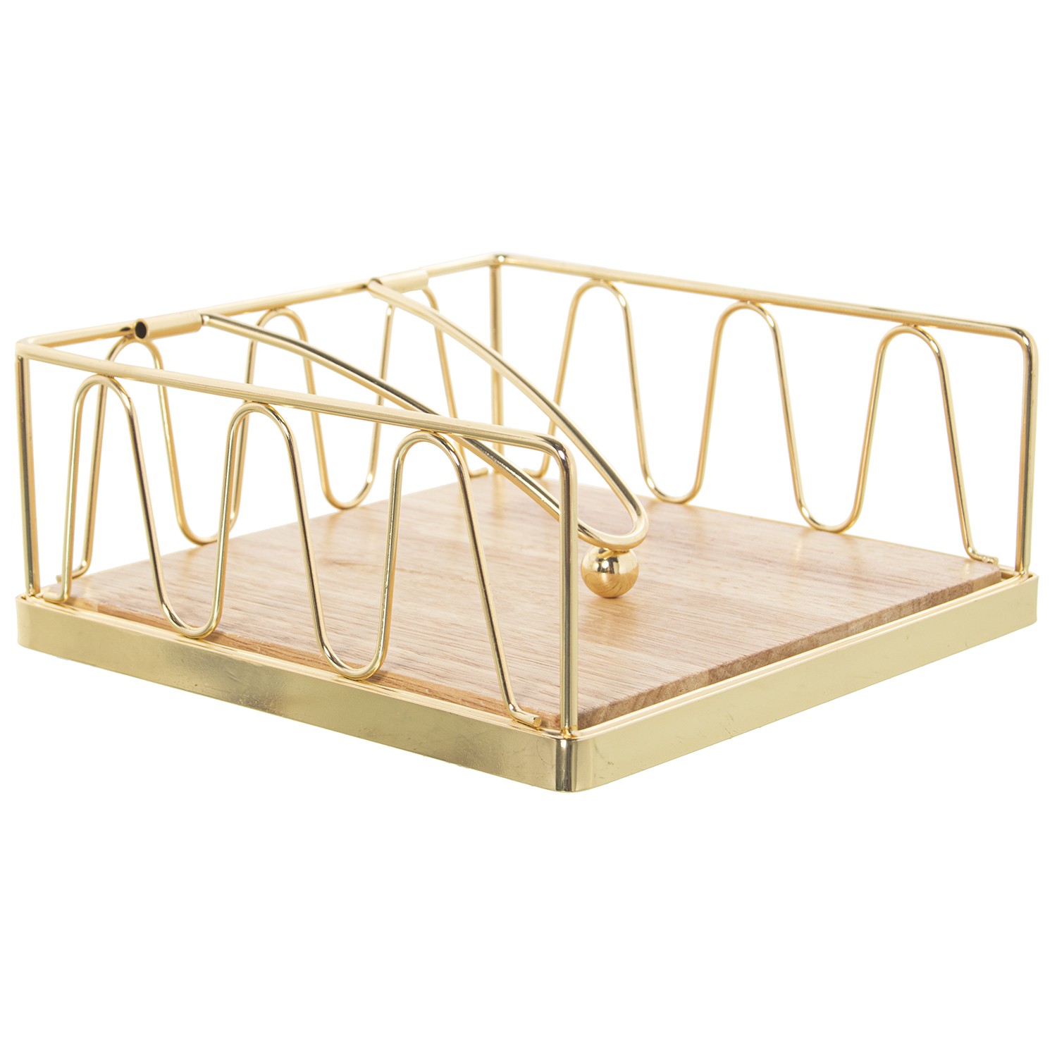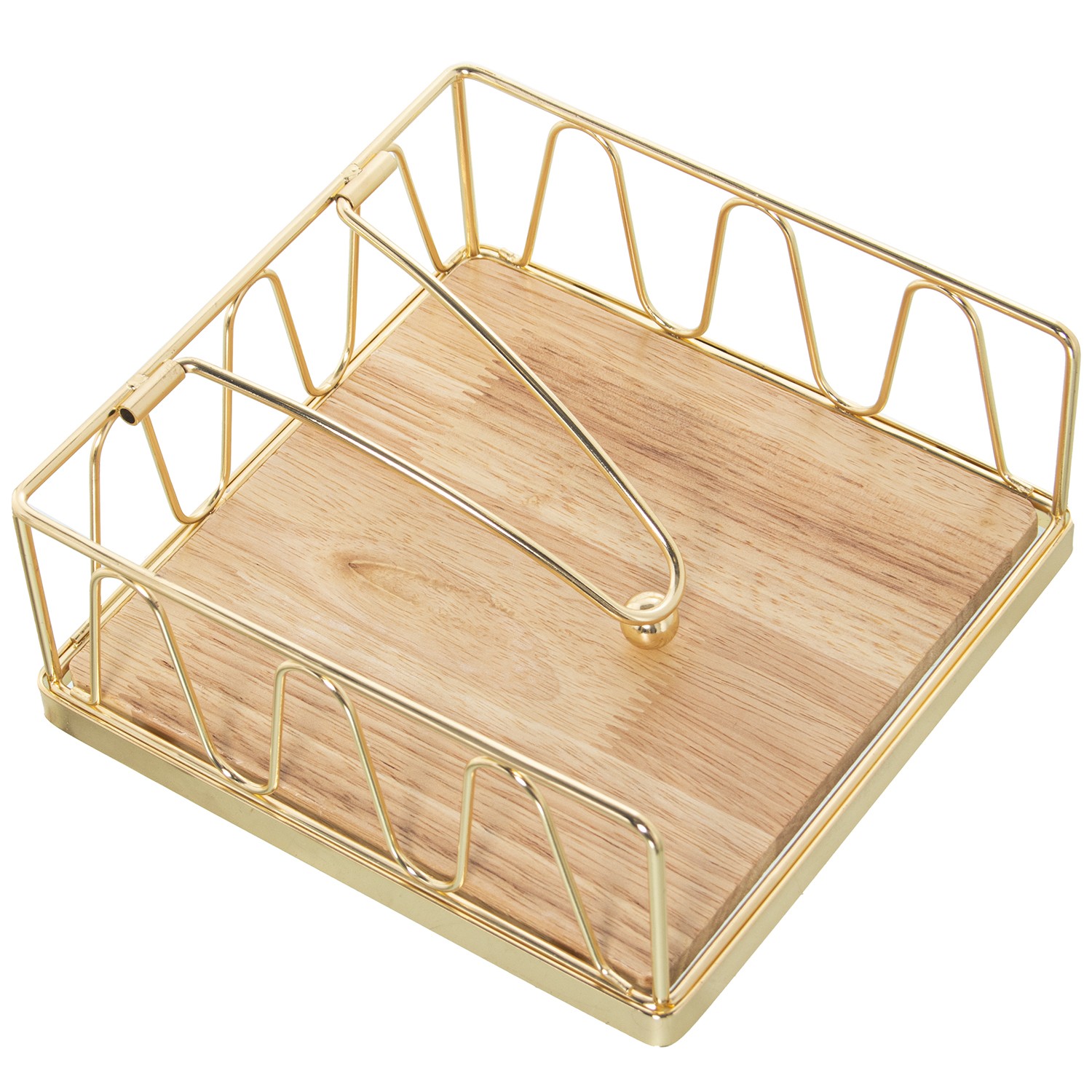 Servilletero Metal Dorado C/base Madera 18x18x8cm
